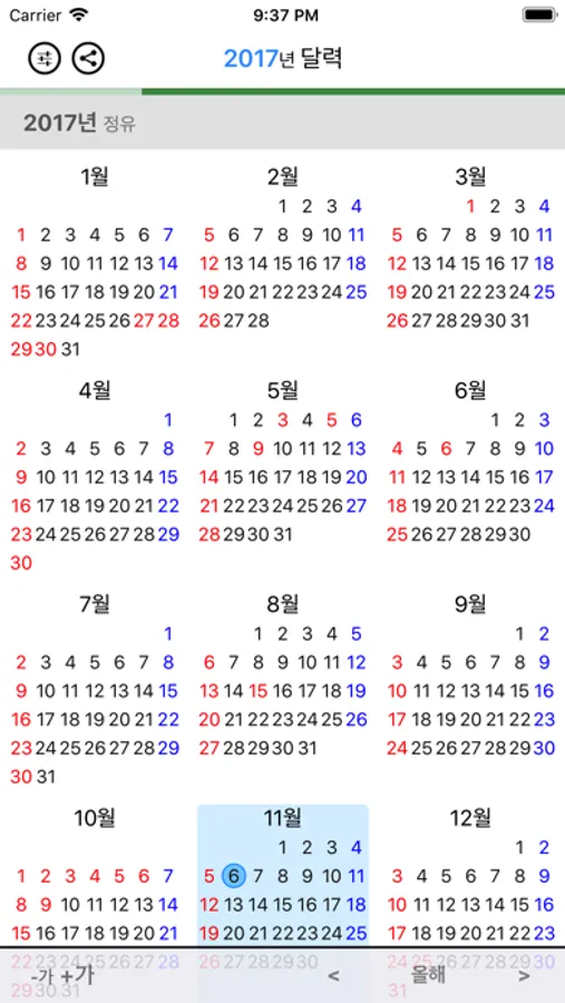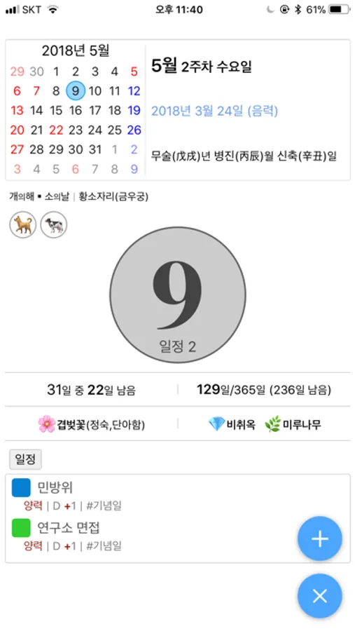 1. 양력, 음력, 윤달, 년간, 월간, 일일 달력 제공