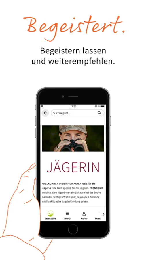 Egal ob Waffen, Munition, Ausrüstung oder Mode - mit der Frankonia-App haben Sie das komplette Shopping- und Serviceangebot von Frankonia immer in Ihrer Tasche.