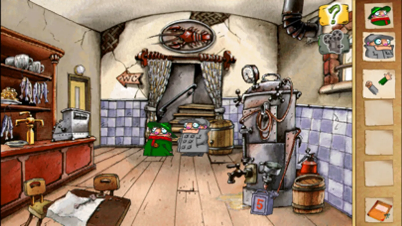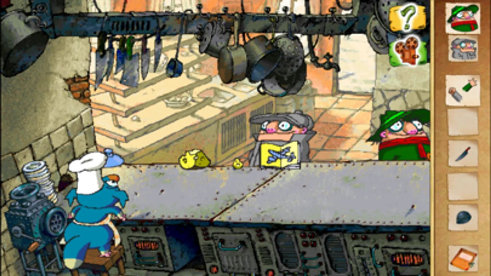The Pilot Brothers’ cat Arsenic has been kidnapped by Experimental Chef Sumo! Now the famed duo must track down Arsenic before he’s served with French fries. Per usual, this madcap detective adventure won’t be without its twists and turns, as the brothers must start by constructing a composite of the catnapper’s face with the help of a witness. Before long they’ll be slipping past ticket collectors at the railway station, driving a railroad handcar and chasing a train carrying Sumo and Arsenic. Help the Pilot Brothers cross the river – without a bridge – and solve numerous challenging puzzles to save Arsenic in this heart-pounding quest!