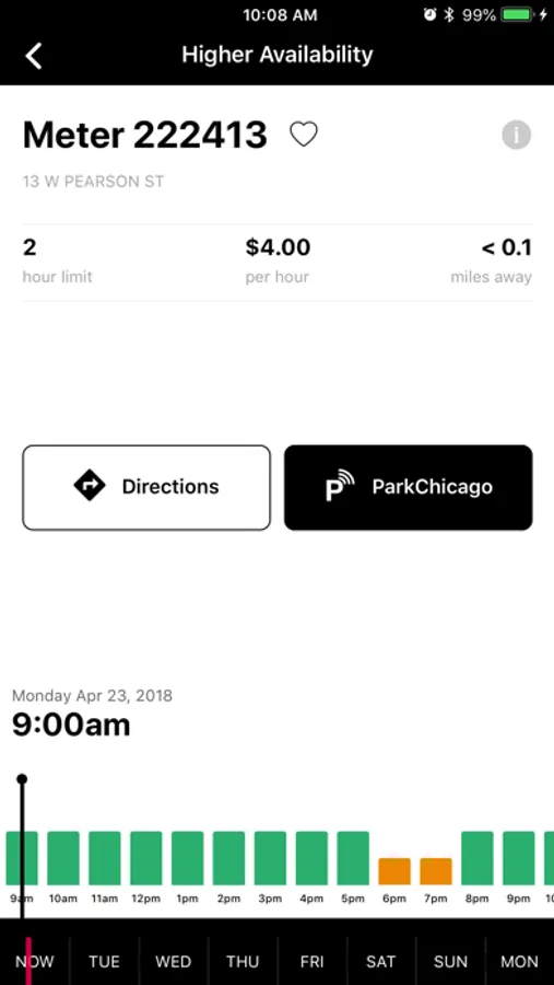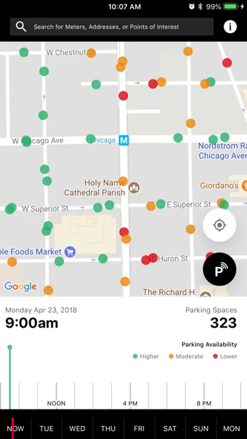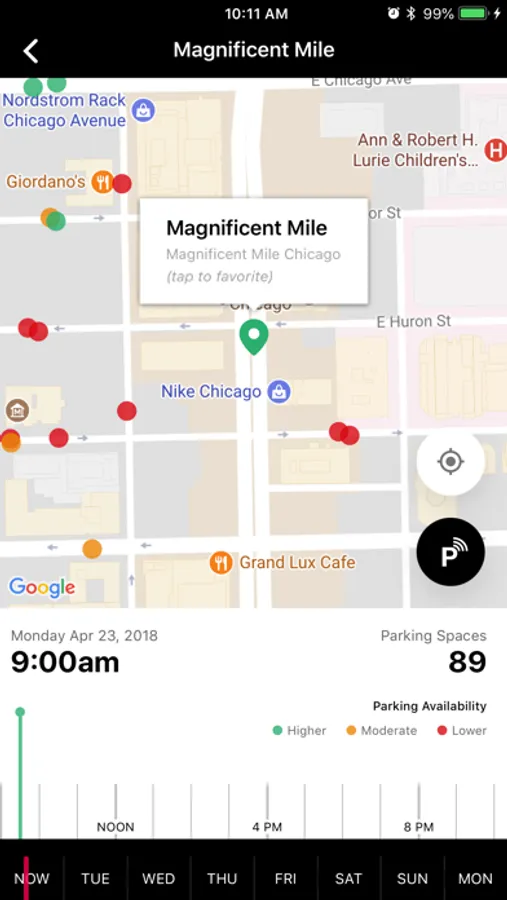 - Use the predictive availability feature to see when a parking spot will be available over the next week