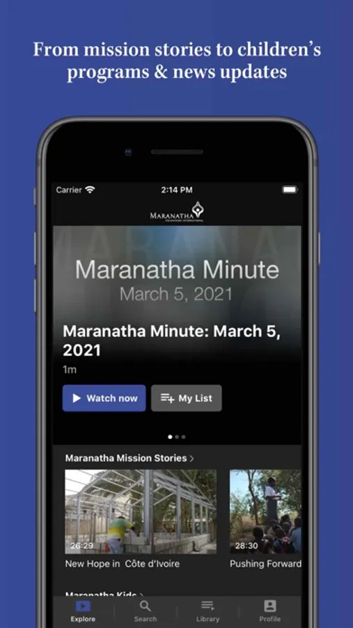 Immerse yourself in the inspiring world of missions on the Maranatha channel. From Maranatha Mission Stories, our flagship television program, to children's programs and news updates, watch how Maranatha is making an impact around the world through the construction of churches, schools, and wells, in the lives of local communities and the volunteers who serve them.