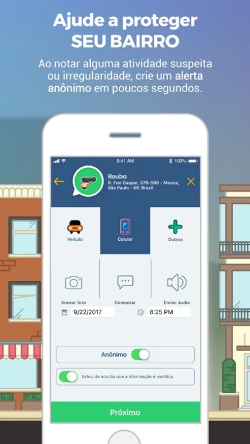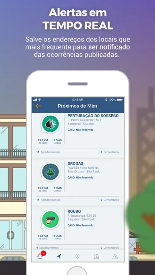 - Colaboração com as autoridades: seus alertas ajudam a aumentar a eficiência e produtividade das autoridades em São Paulo, tornando as ruas mais seguras.
