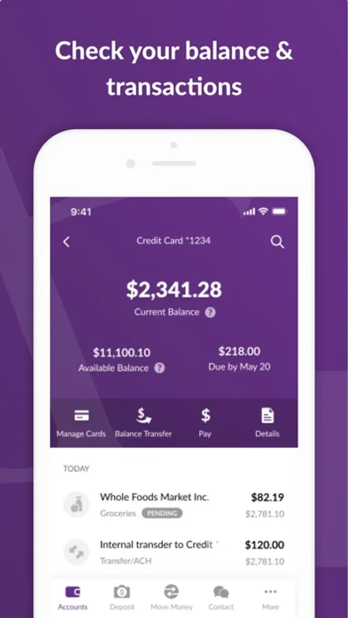 • Set a checking account to round up all debit card purchases to the next whole dollar, then automatically transfer the difference to your savings; manage Stash Your Cash from the Move Money screen