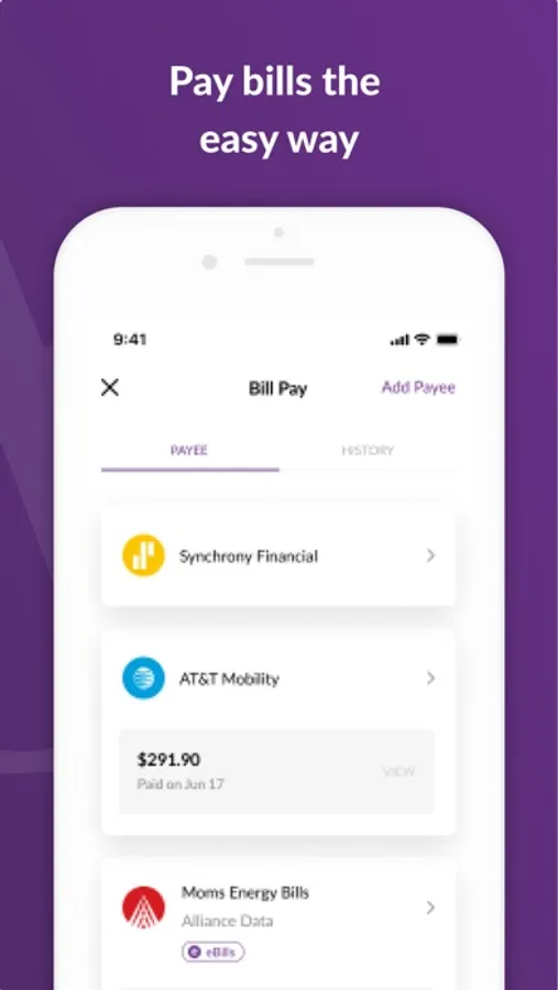 • Enroll in Bill Pay from the app, and see your eBill amounts and due dates