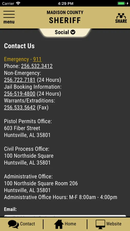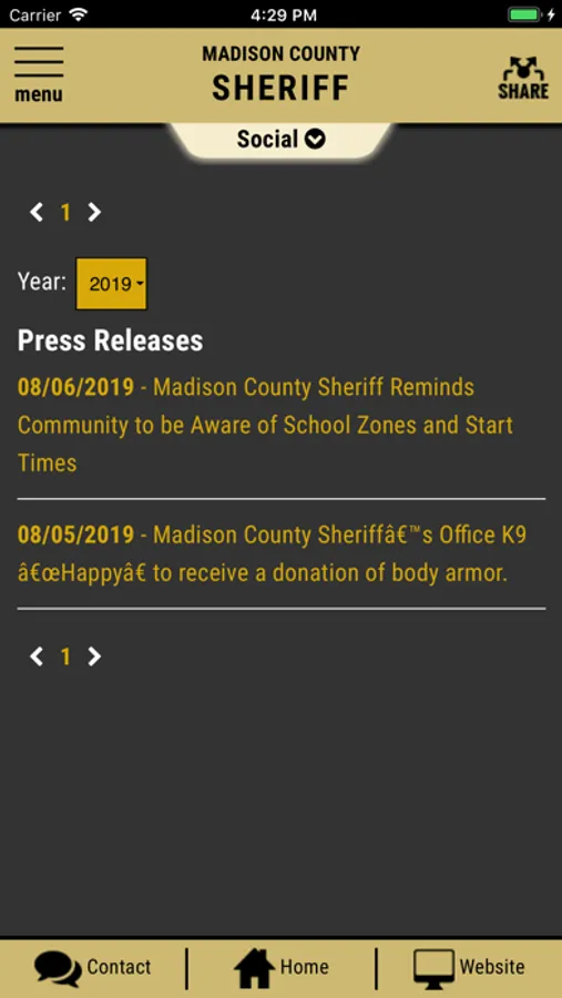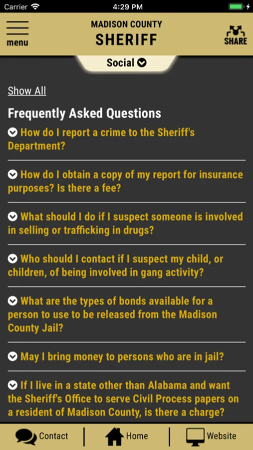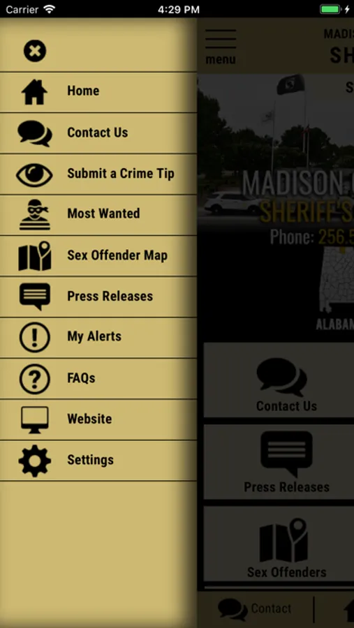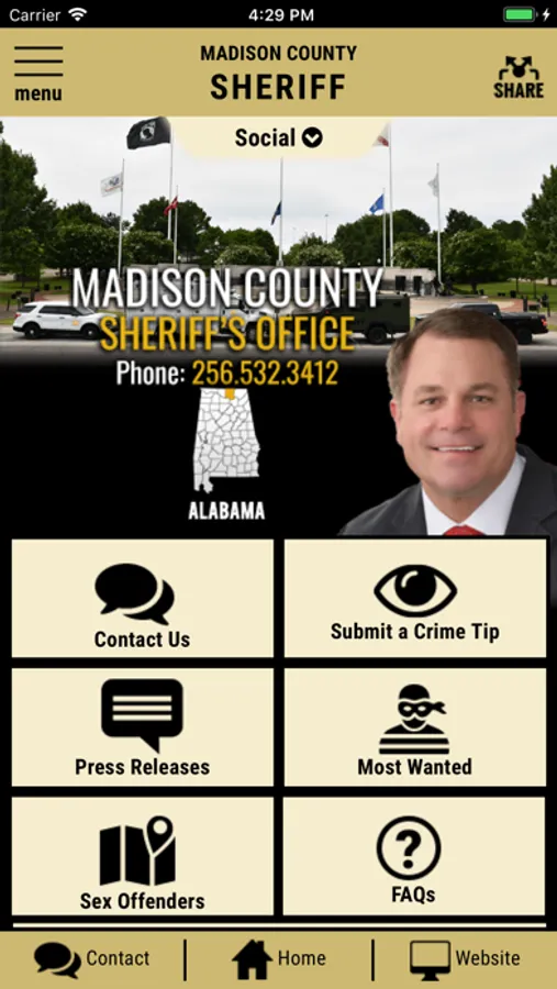 The app has public information for press releases, most wanted, and FAQ's. Crime tips and contact us messages can be sent to the S.O.