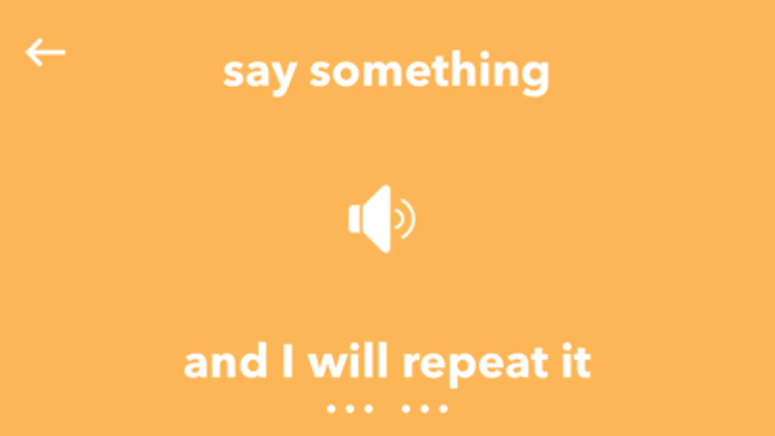 The speaker icon allows the user to say words aloud and have them repeated back.