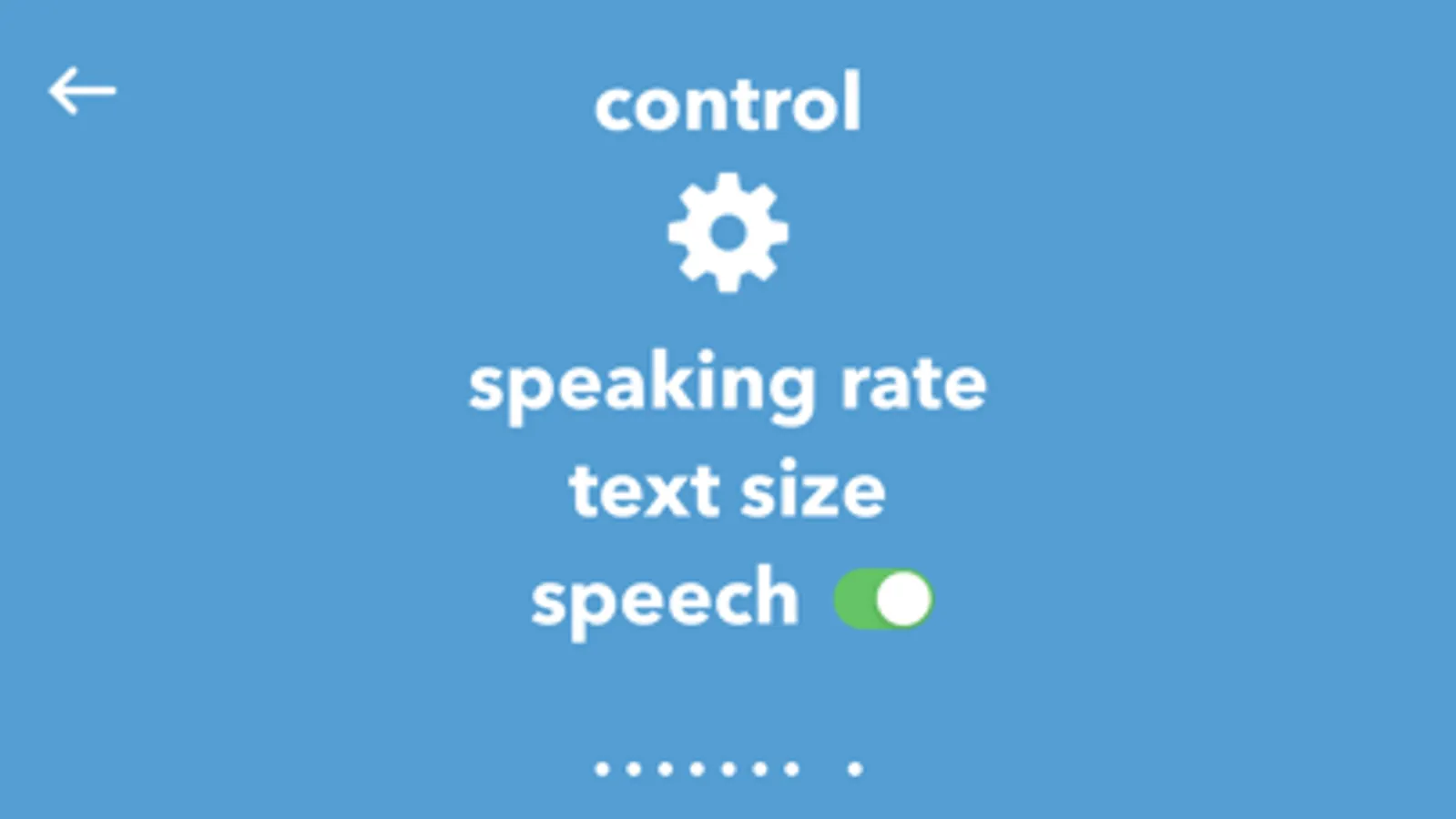 The speech rate and size of the letters can be easily controlled on the settings page.