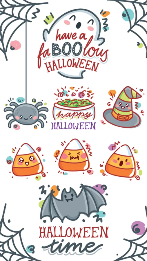 Set of 24 cute hand drawn stickers with lettering for iMessage.