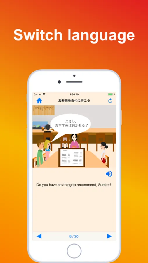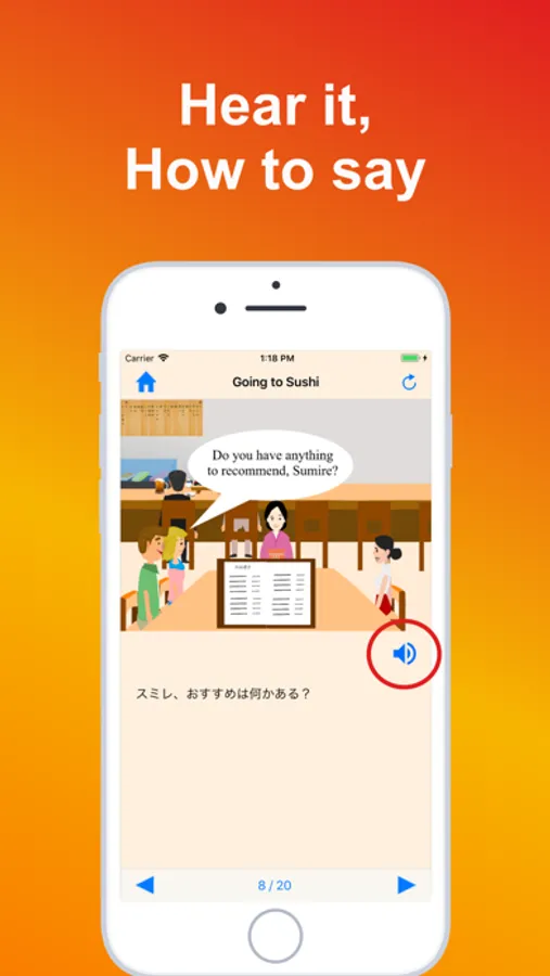 Tourists visit to Japan and meet their Japanese friend. They visit sushi restaurant. Through these scenes, you will learn various words or expressions which you will use if you are traveling Japan.
