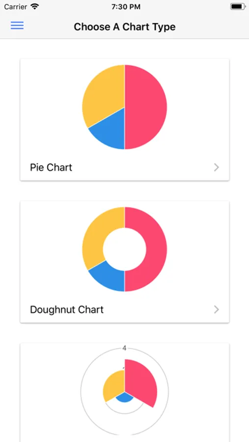 This app is created for users who want to create charts easily on mobile phones. It support 8 types of charts :