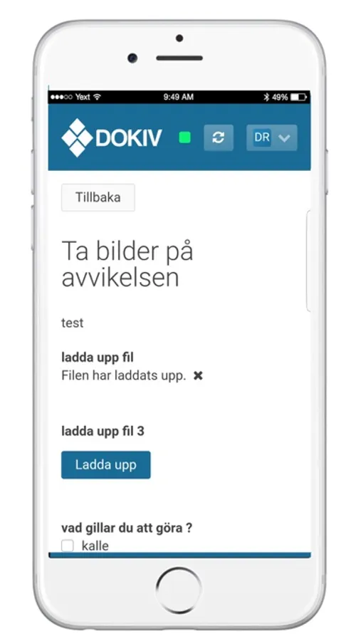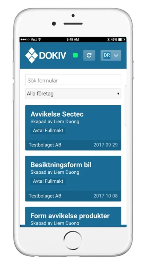 Dokiv är ett webbaserat system där du kan enkelt skapa dina egna digitala formulär, Dessa formulär kan du fylla i via webben eller direkt i appen. Fördelen med appen är att det funkar utan tillgång till internet och skickas så snabbt du har internet igen.