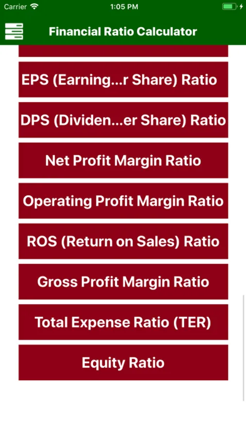 list of financial ratios