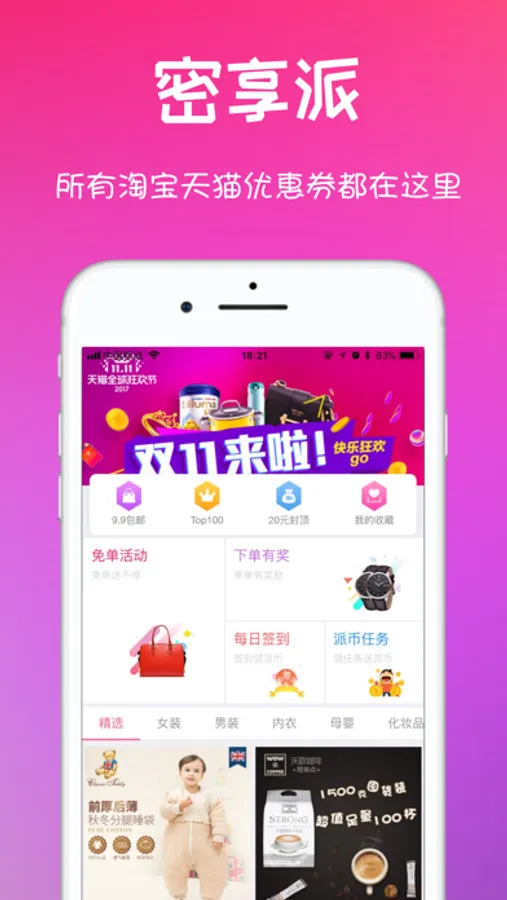隶属于大鹫科技旗下密享派品牌,每日实时更新并免费提供几十万款网购优惠券,限时限量特卖,全场最低1折包邮,价格惊喜到爆!我们的口号是:便宜偏有好货!
