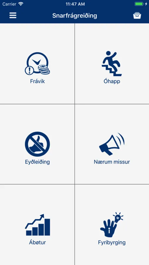 Hetta er appin hjá SEV til fráboðan av HTU. Appin er tengd at HTU skipanini. Tær nýtist brúkaranavn og loyniorð fyri at nýta appina.