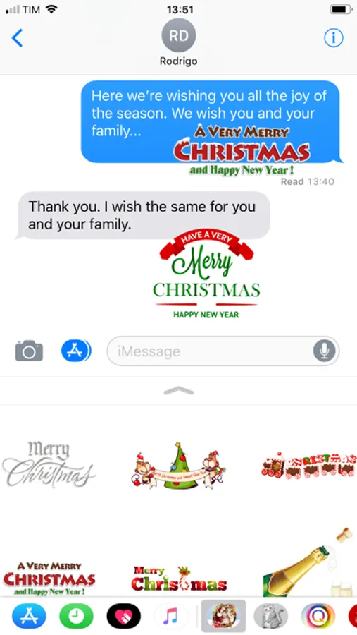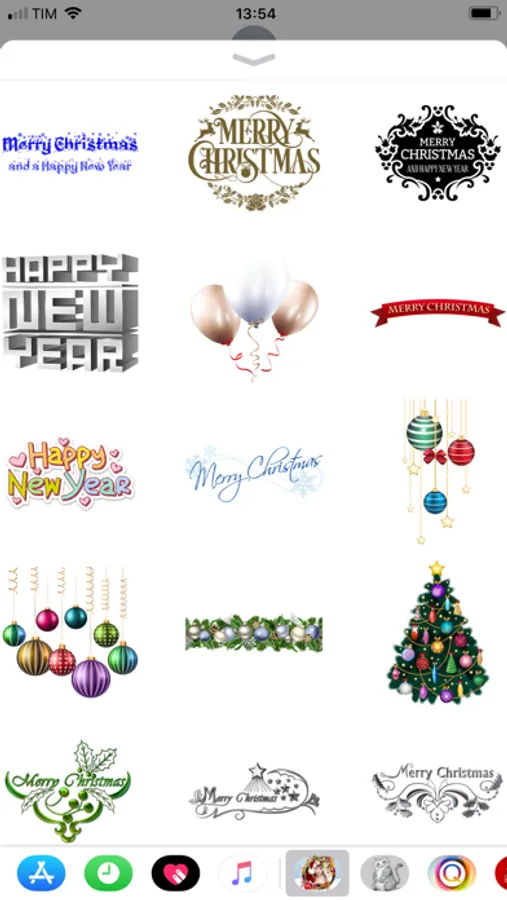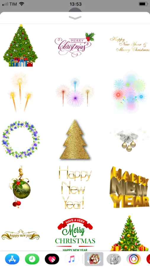Enjoy wonderful stickers with Christmas trees, Santa Claus, custom phrases, snow flakes, Christmas Carriage and much more. You'll also find stickers to wish Happy New Year with fireworks, fancy custom numbers from 0 to 9, new year's toast and other amazing icons from New Year! Give to your messages a beautiful festivities look with Christmas and Happy New Year stickers!