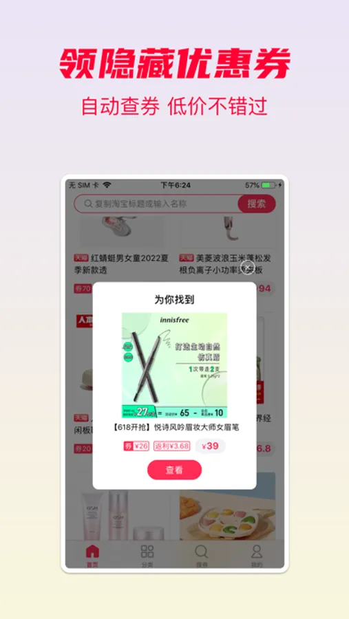 用省钱酱查淘宝、京东隐藏券,优惠不错过,尽享超低价。