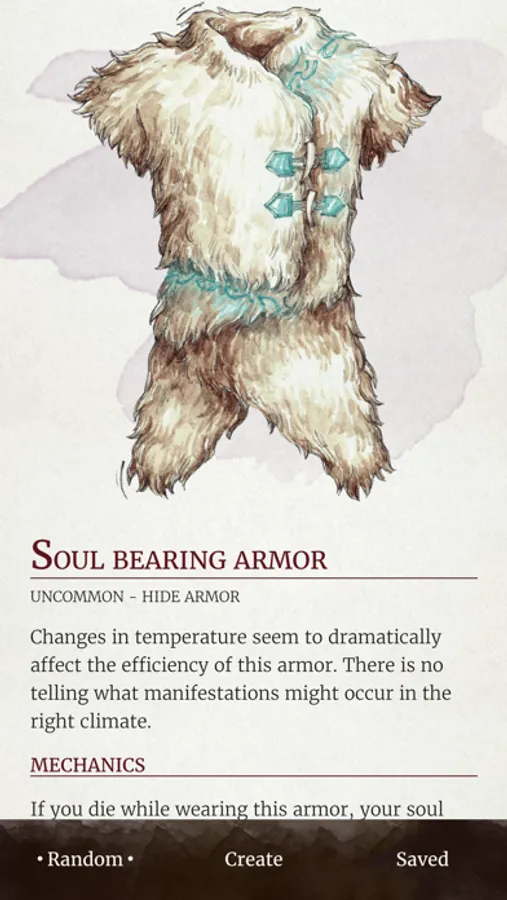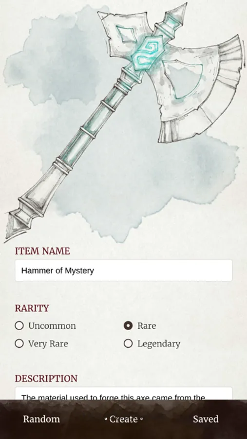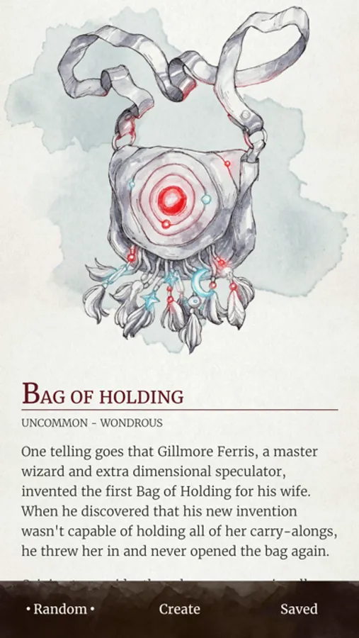 While the compendium is simple to use, it is more than just a random magic item generator. As a dungeon master, you will have the power to generate thousands of random magic items with a single tap. You will also be able to create your own custom magic items or adapt random magic items to fit your game setting. Once you find an item you love, the magic item compendium lets you save it to your phone so you can pull it up quickly the next time you play. To top it all off, the compendium includes a handful of wondrous items that are ready for you to reference and use in your game.