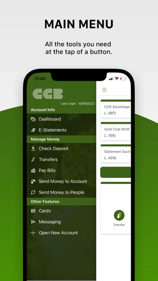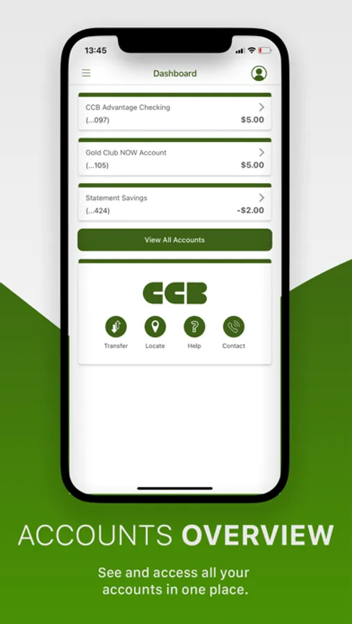 With CCB's Mobile Banking App, you can safely and securely access your accounts anytime, anywhere. Our mobile app is FREE and allows you to: