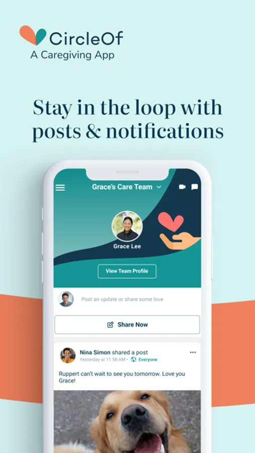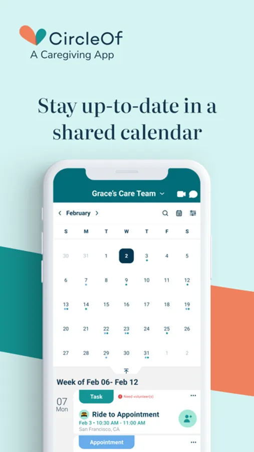 CircleOf helps the caregiver connect with family members and coordinate the care of any loved ones when it’s time for care, with the help of other people in the circle.