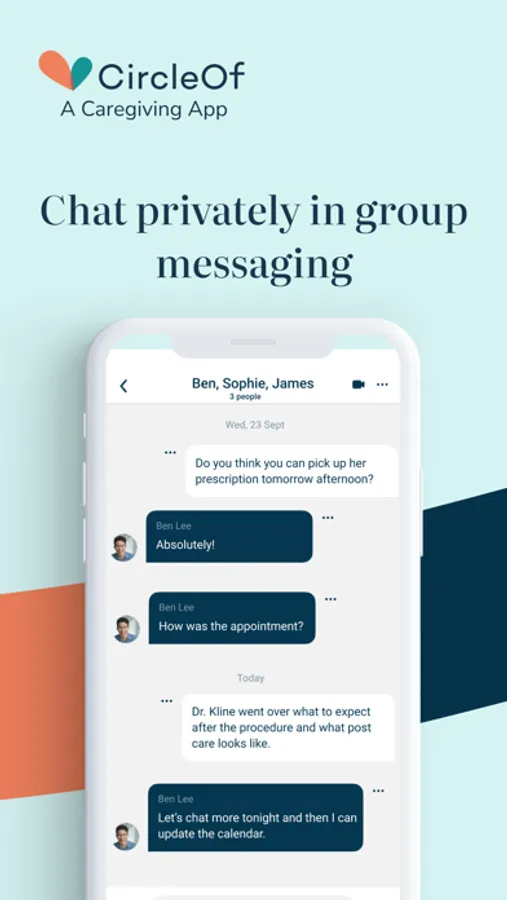 Getting lost in group text threads? Get in touch with your group of mobile caregivers easily, see all of your caregiver support services and communications in one place with a flexible, private chat function that lets you manage how to share important information, as well as photos and special moments.