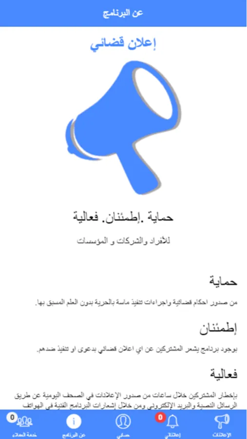 إطمئنان بوجود برنامج يشعر المشتركين عن اي اعلان قضائي بدعوى او تنفيذ ضدهم.