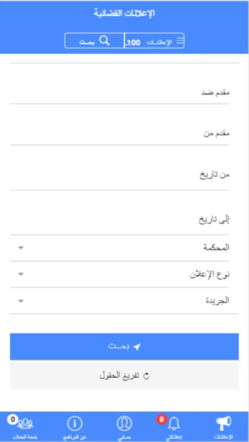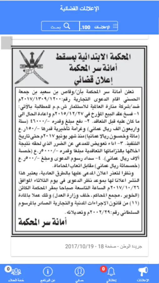 إعلان قضائي للأفراد والشركات او المؤسسات سوف يخطرك بأي إعلان قضائي قد ينشر ضدك او ضد احد شركاتك او أفراد أسرتك
