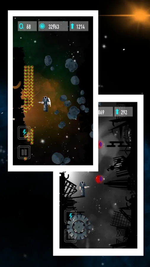 you've been jettisoned out of an air lock, putting you on your way to clean up the planet. Purchase upgrades or earn enough units of oxygen to upgrade your mode of movement.