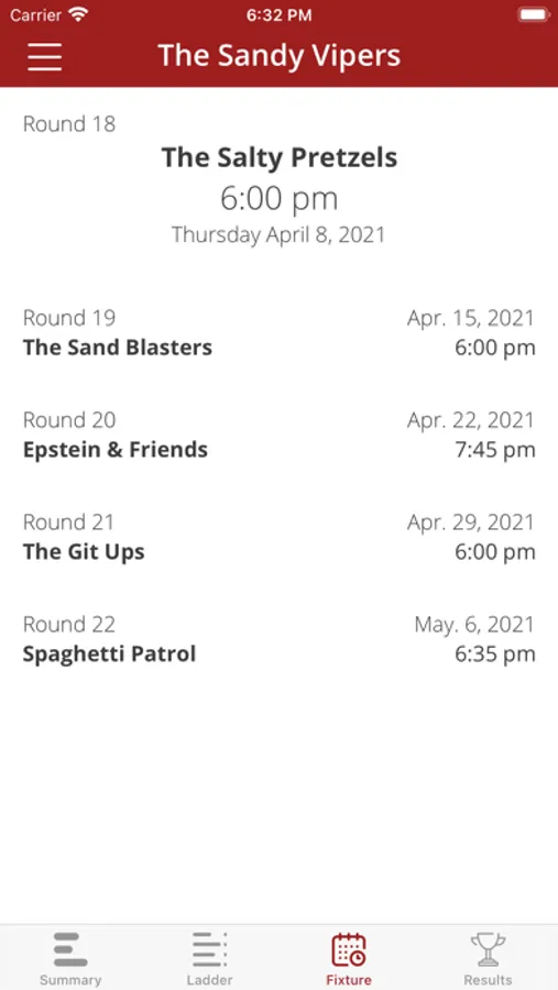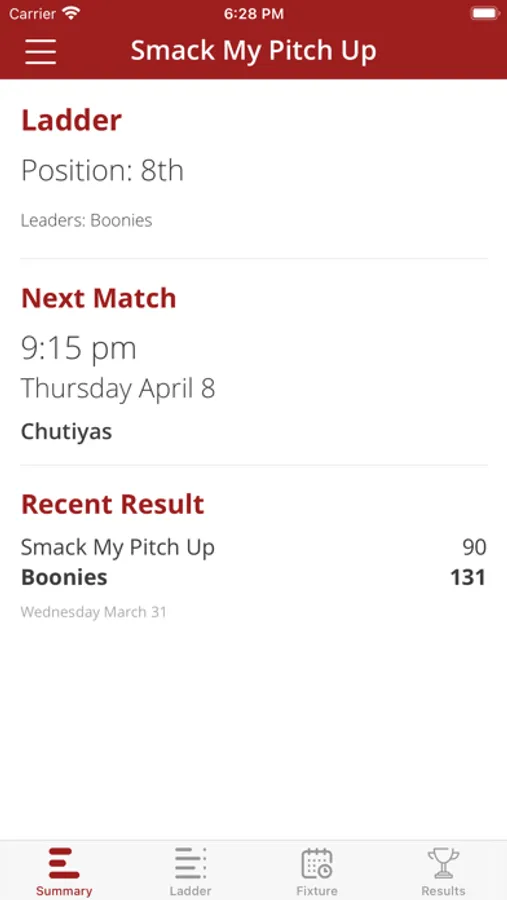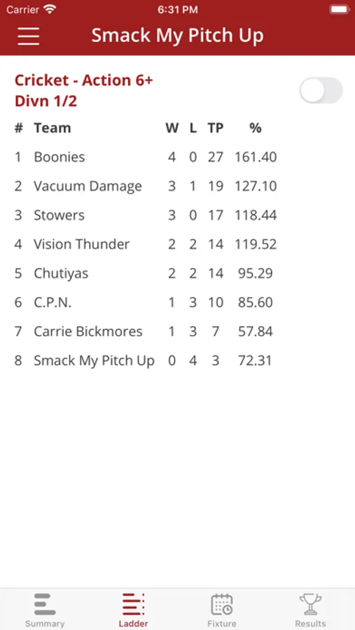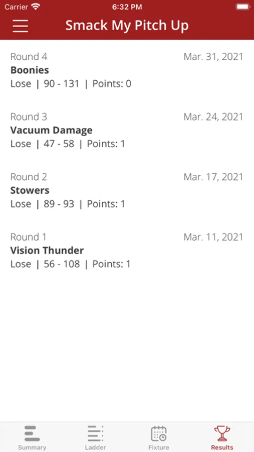 - View a detailed league ladder with wins, losses, draws, percentage, and more