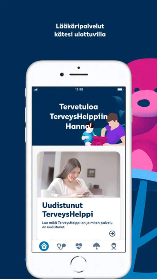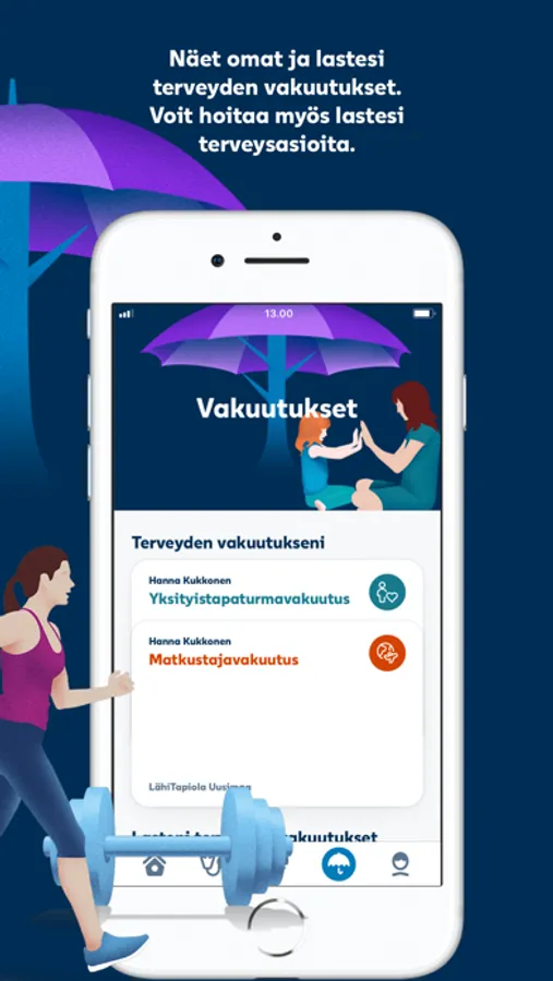Through TerveysHelppi you can take care of your children’s health issues, and view the health insurance policies of your children if you are the policyholder. You can use TerveysHelppi if you or your child has taken out insurance of the person in LocalTapiola.