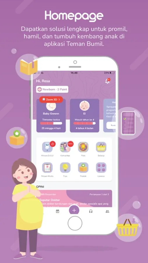Memantau tumbuh kembang janin dan si Kecil menjadi lebih mudah dan menyenangkan melalui fitur Milestone di Teman Bumil. Dengan ilustrasi yang menarik, memantau perkembangan kehamilan dan anak jadi lebih menyenangkan!