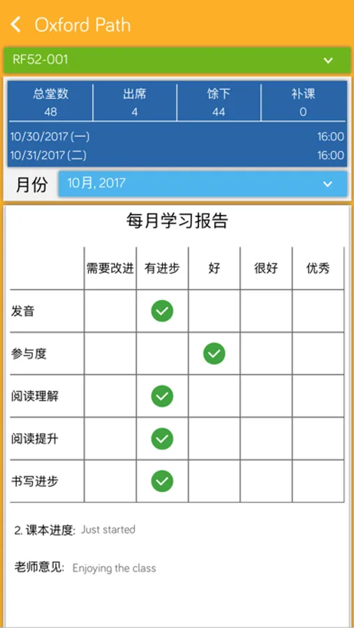 通过这个程序,您可以同步获得您孩子在学习的相关进度信息: