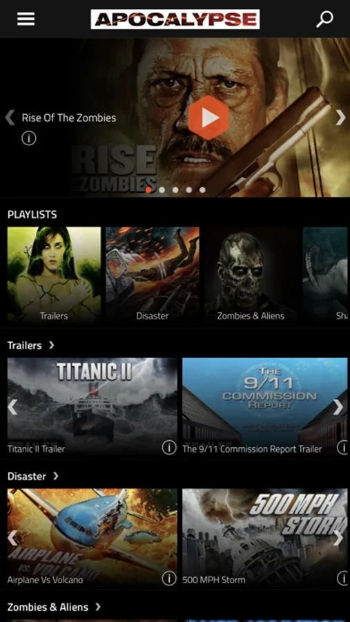 Horror! Action movies! Thrillers! APOCALYPSE allows you to watch epic movies anywhere anytime, on any mobile or connected device — while running for your life, or in the comfort of your own home… or fall-out shelter.