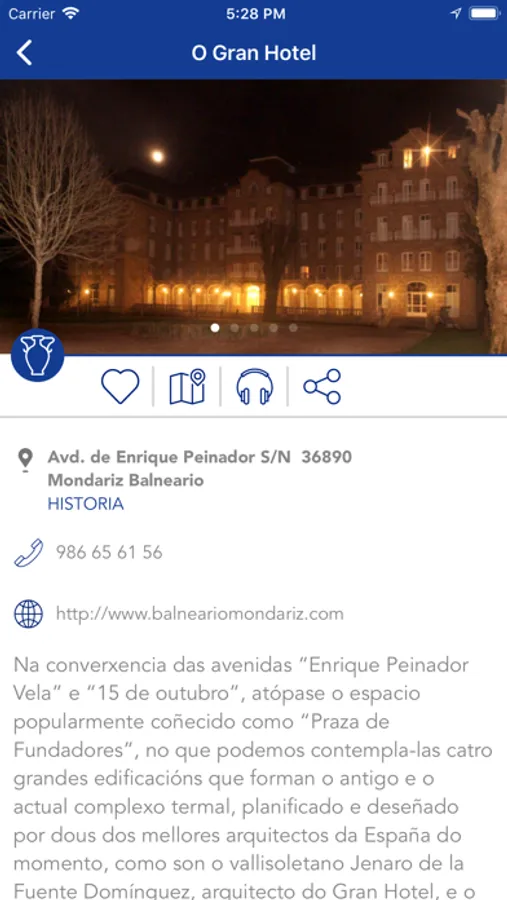 El objetivo de la aplicación, es convertirse en una herramienta para la promoción turística del Ayuntamiento de Mondariz Balneario (Pontevedra), que permita a los usuarios encontrar toda la información, sobre los principales atractivos turísticos que existen dentro del territorio municipal, permitiendo la localización geográfica y la visualización en imágenes de los mismos, en dispositivos móviles, de una manera sencilla y atractiva.