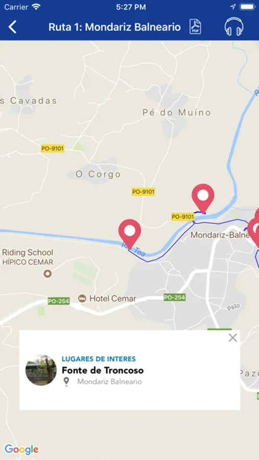 - Preto de min ( Mapa e cámara de realidade aumentada para mostrar a localización dos puntos turísticos. )