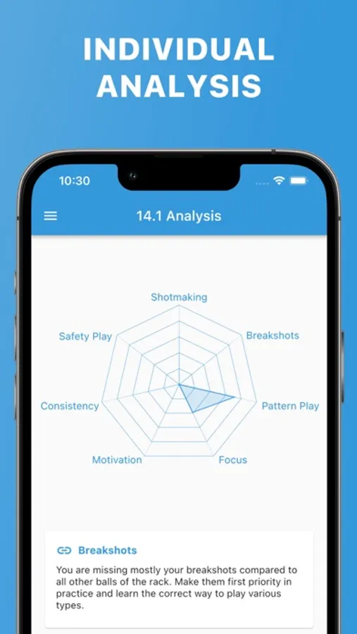 It helps you focus on your game rather than worry about scorekeeping. But it's not another scorekeeping app: Your match data is used to provide insightful statistics and hints on where you can improve you game to do better next time. It helps you visualizing your progress and getting closer to your personal targets.