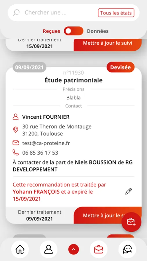 Elle permet aux membres de saisir des recommandations, consulter les recommandations reçues, consulter les mails, les invitations et chatter avec les membres du réseau Protéine.