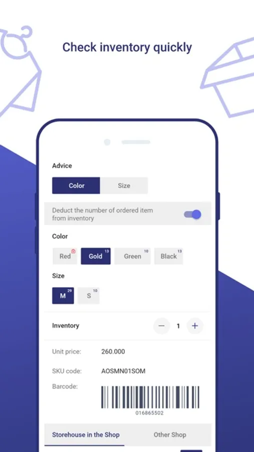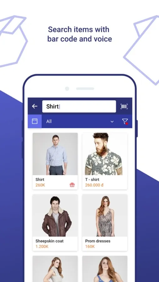 - Search items quickly in multiple ways: Search by Item name, SKU code, voice or bar code.