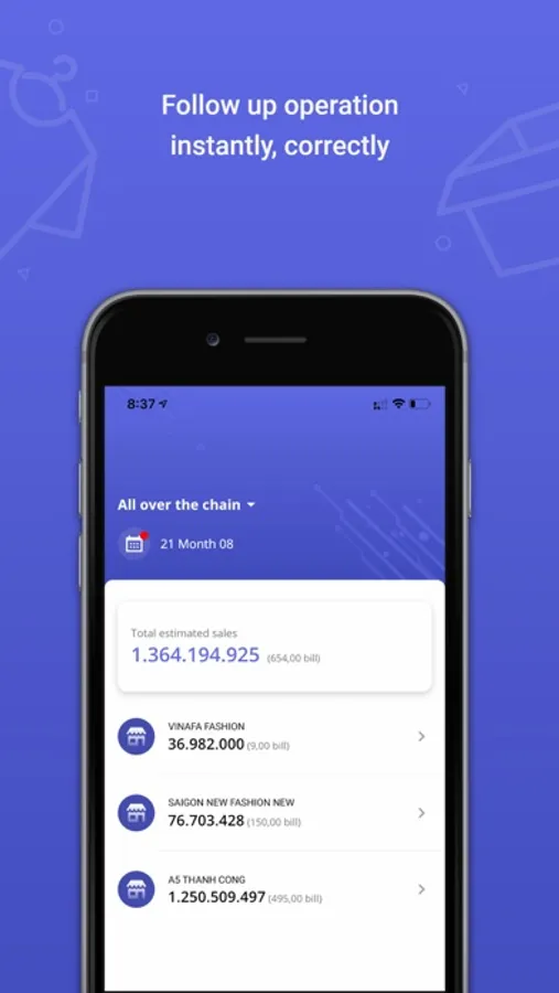 MISA eShop - Manager is an app of MISA eShop software which helps the manager/owner keeps updated with business activities quickly, conveniently, accurately regardless of time and place.