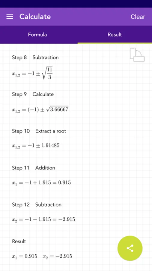 This app uses the pq formula for finding the zeros of a function quickly and easily. For this, only the values for pq must be entered. All calculations are stored in the history. The final solution can be shared.