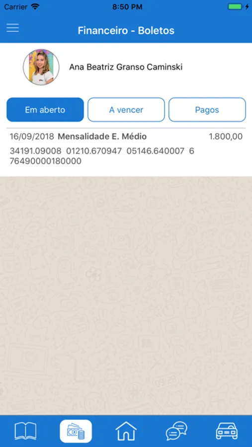 - Impressão de boleto bancário (para responsáveis financeiros) com atu-alização de valores;