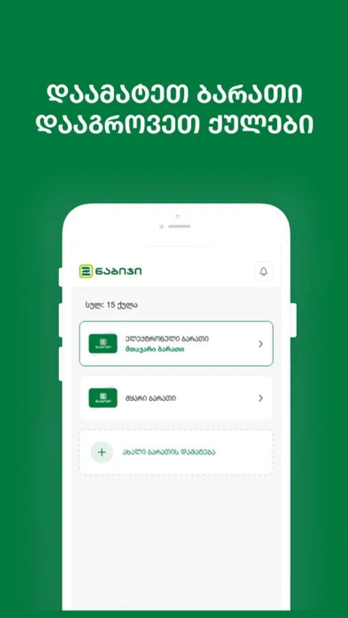 You can add both an electronic card and an existing plastic card to the application, in addition you can unite family members’ cards into one account, collect points together, save faster and easier.