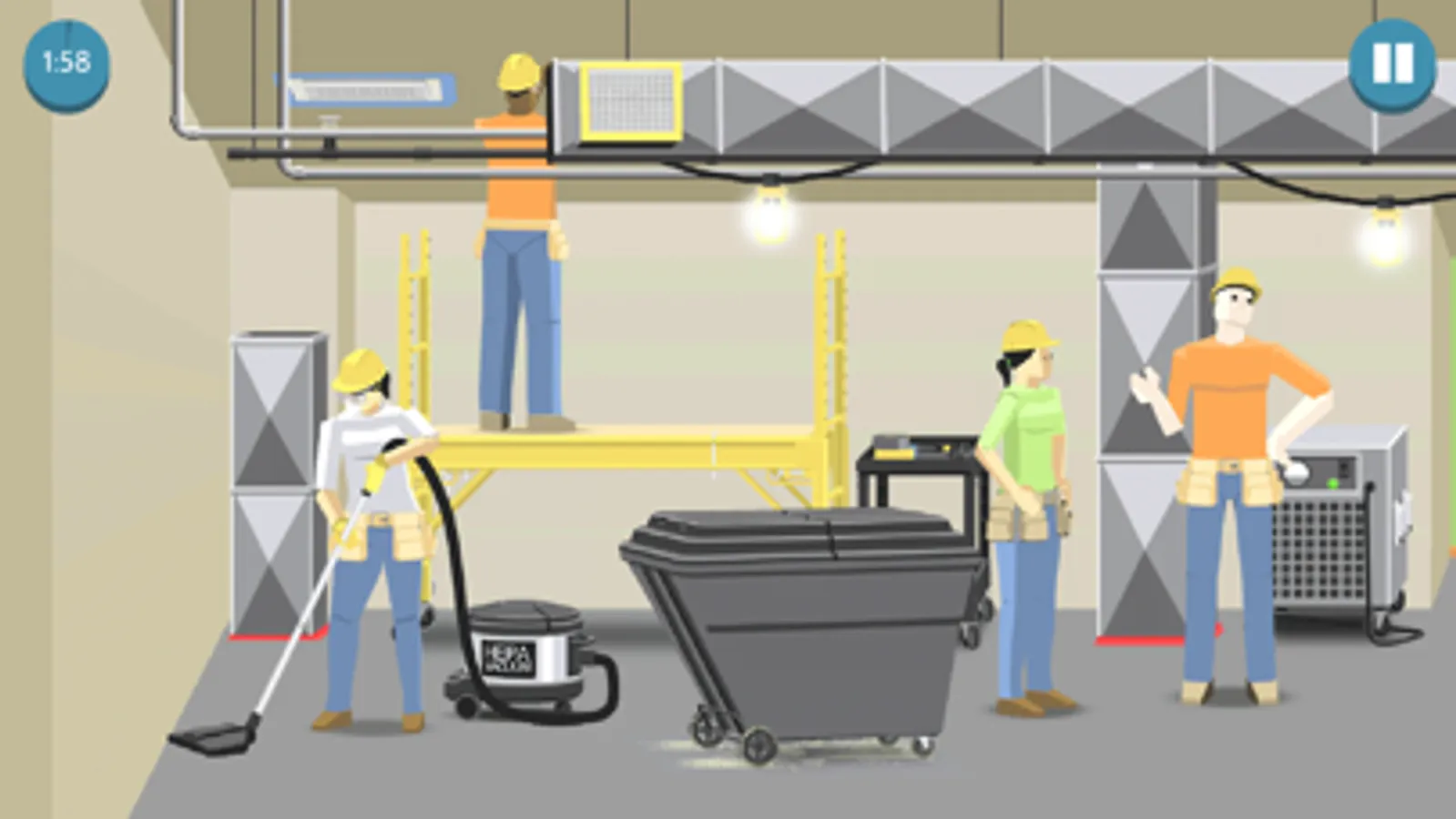 ICRA for Construction is a video game designed to raise the awareness of infection control in healthcare environments. Construction workers must recognize hazardous conditions around them to promote safe practices and prevent the spread of infection. Players investigate construction sites and practice identifying some of the common hazards that may be present at a healthcare facility. NOTE: The game is intended to supplement, not replace, formal training. For more information on obtaining formal training, visit www.kmlcarpenters.org/icra/