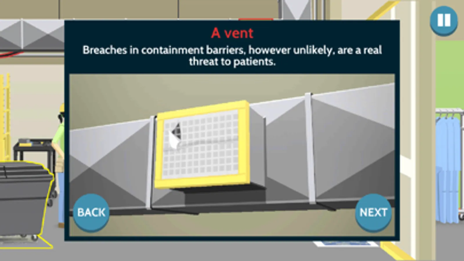 You are a carpenter on the job at a hospital. There are unique safety hazards on a healthcare construction site. Look for things that could cause contamination to help protect others from infection. The only thing between the patients and dangerous pathogens is you!