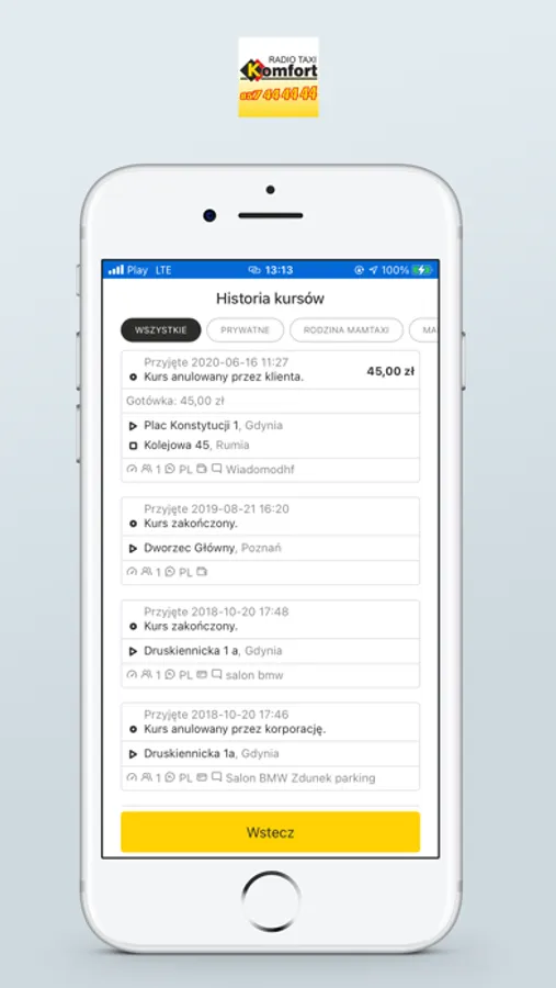 Korporacja taksówkarska Komfort powstała na początku lat dziewięćdziesiątych. Od samego początku postawiła sobie za cel świadczenie najwyższej jakości usług przewozowych. Dzięki temu zyskała opinię jednej z najsolidniejszych firm na rynku białostockim. Swoją pozycję zawdzięczamy głównie profesjonalizmowi naszych Kierowców, którzy wiedzą, że tylko zadowolony Klient jeszcze raz skorzysta z ich usług.