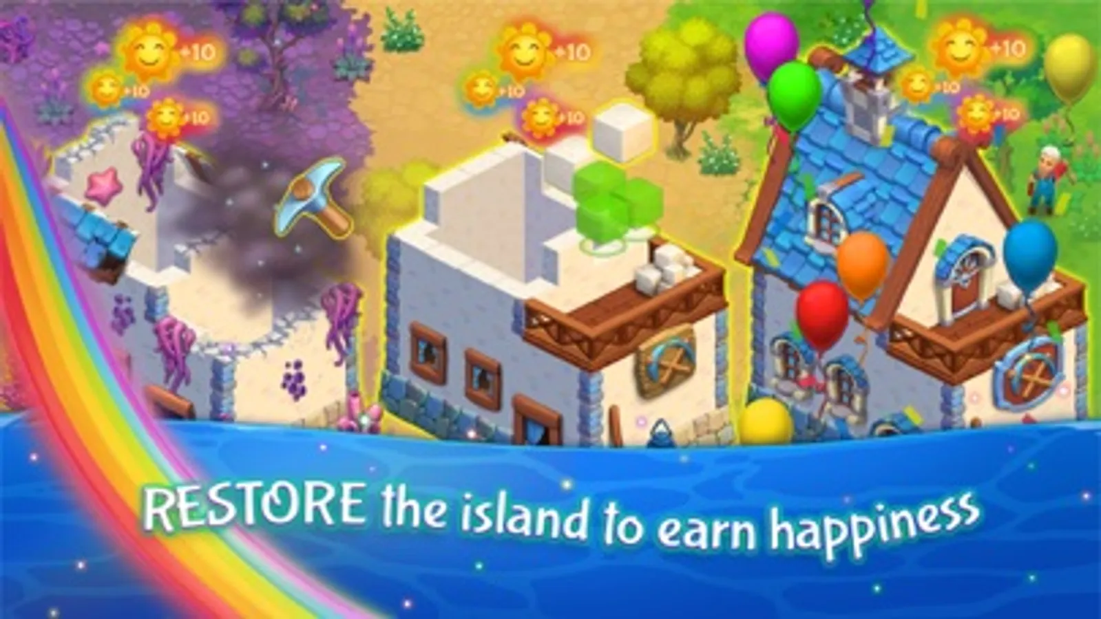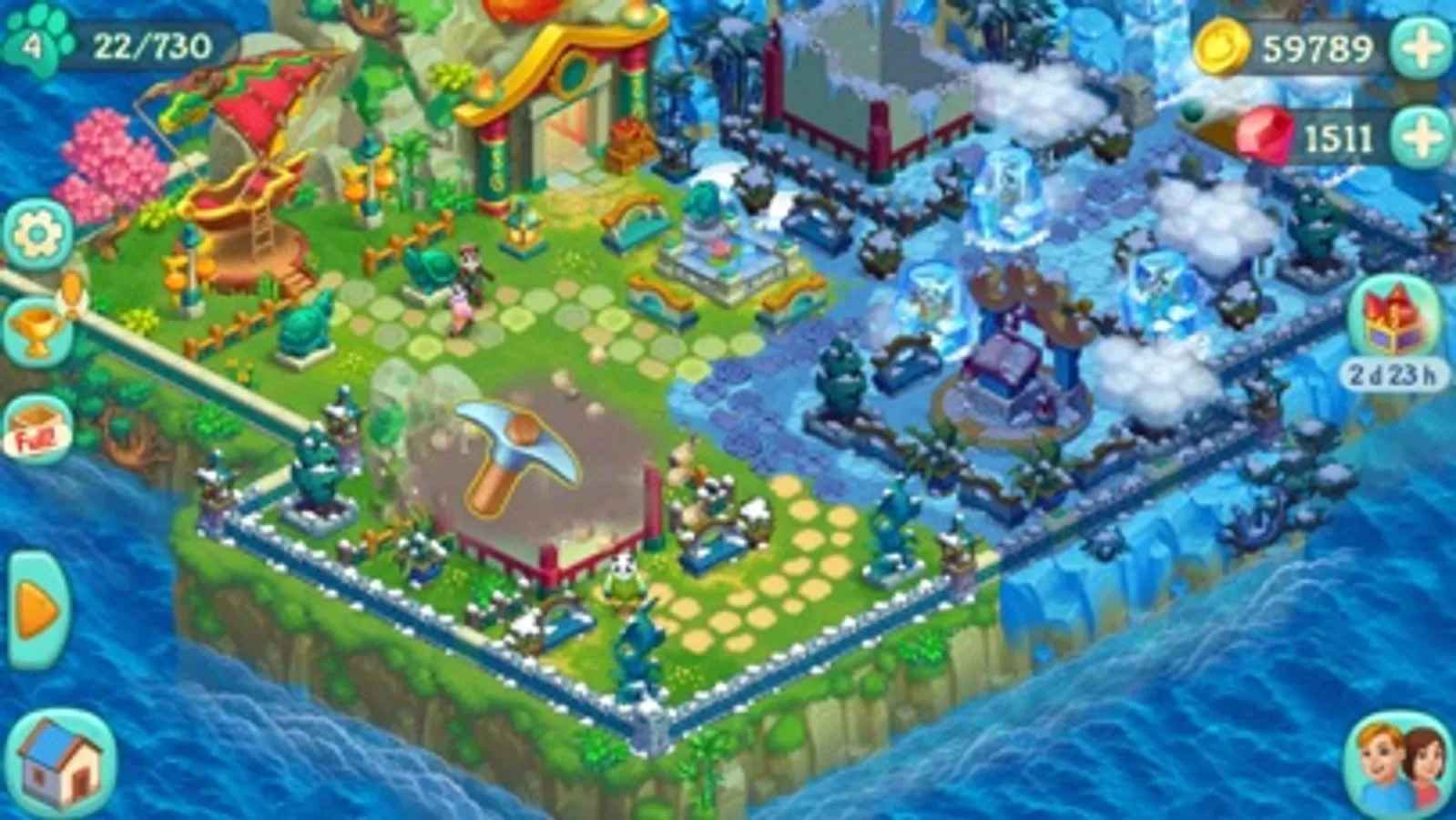 Journey to a magical sparkly island where pandas, wizards, mermaids are just the beginning! BEDAZZLE, CRAFT and FARM your way through enchanted lands as you free a world submerged in water. Can you reverse the curse with the power of smiles and rainbows to bring happiness to the villagers?
