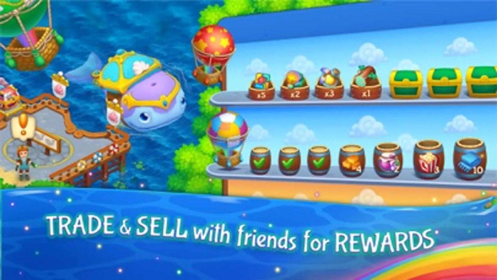 • Fly your hot air balloon to trade and sell goods with neighbors! Making new friends is fun!
