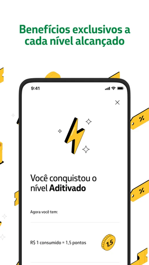 Acumule “raios”, suba de nível e obtenha benefícios sem a troca de pontos.