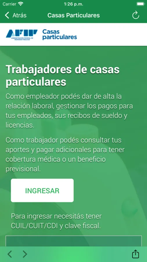 Portal de acceso para empleadores y trabajadores de casas particulares, con las siguientes funcionalidades: