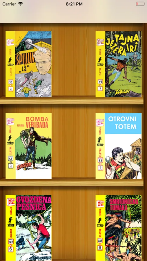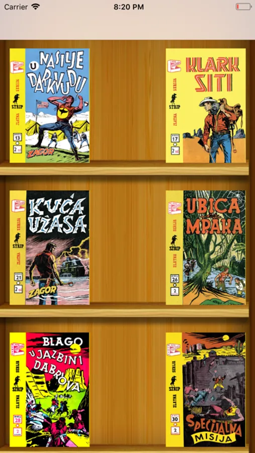 Aplikacija kronološki pokriva prvih 30 stripova Zagor iz Zlatne Serije, kao 1. od 10 kolekcija