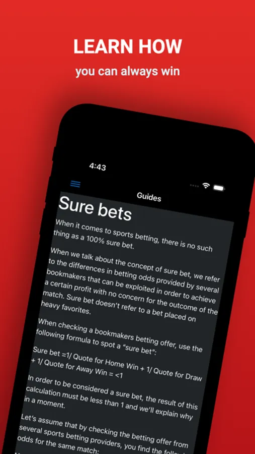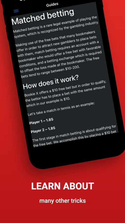 In addition to tips, this application also contains some guides for beginners in e-sports: money management, arbitrage betting, bonus management.